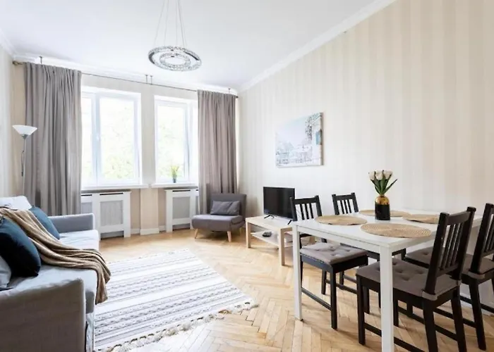 This spacious apartment is situated around 2 km from the PGE National Stadium and 2.2 km from the Łazienki Park. While exploring Warsaw, guests can conveniently reach the National Museum in Warsaw, which is only 7 minutes' walk away. The 70 m² Urban Chic - 10 People - City Center -Nowy Swiat apartment is a short way from the Warsaw City Viewpoint.